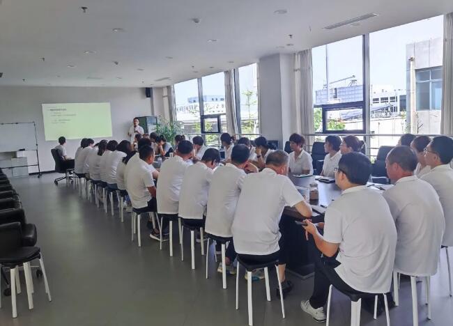 生產(chǎn)部經(jīng)理羅貝貝帶大家回顧了公司上半年的改善內(nèi)容和下半年的改善計劃。